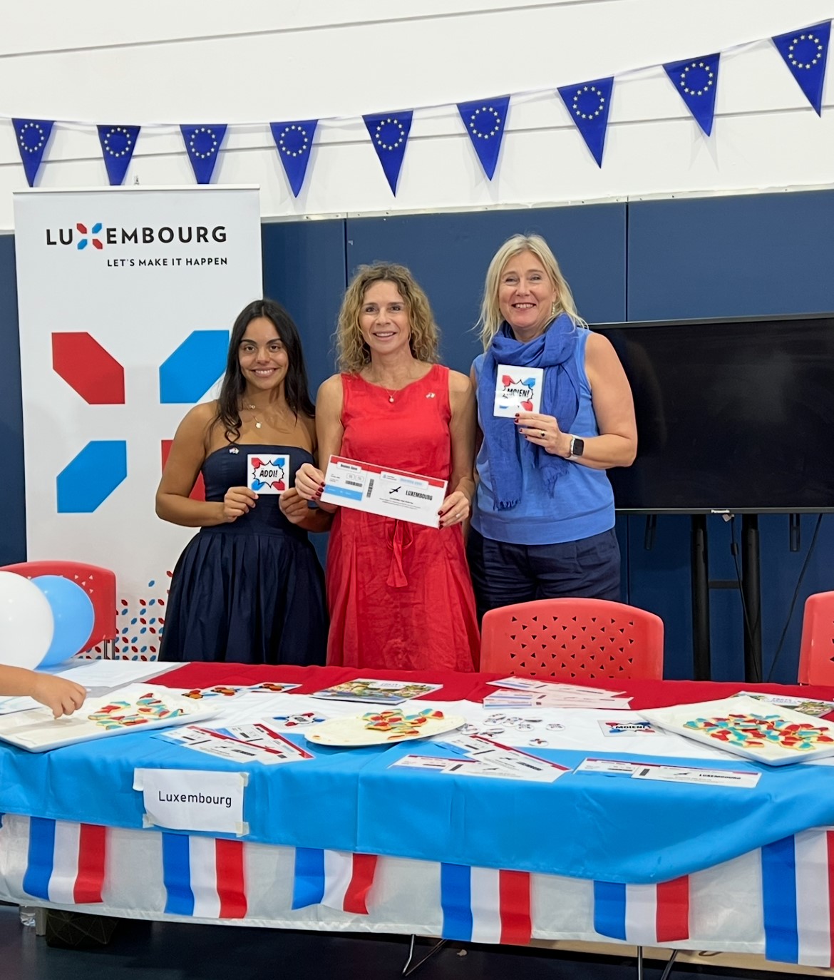 A special word of thanks goes to our new intern, Ms. Debora Vasconcelos, for preparing an engaging and informative PowerPoint presentation on the languages spoken in Luxembourg. Her creativity and dedication greatly contributed to the success of our stand.